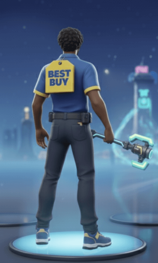 Best Buy will be seen around the Fortnite map and in the item shop…